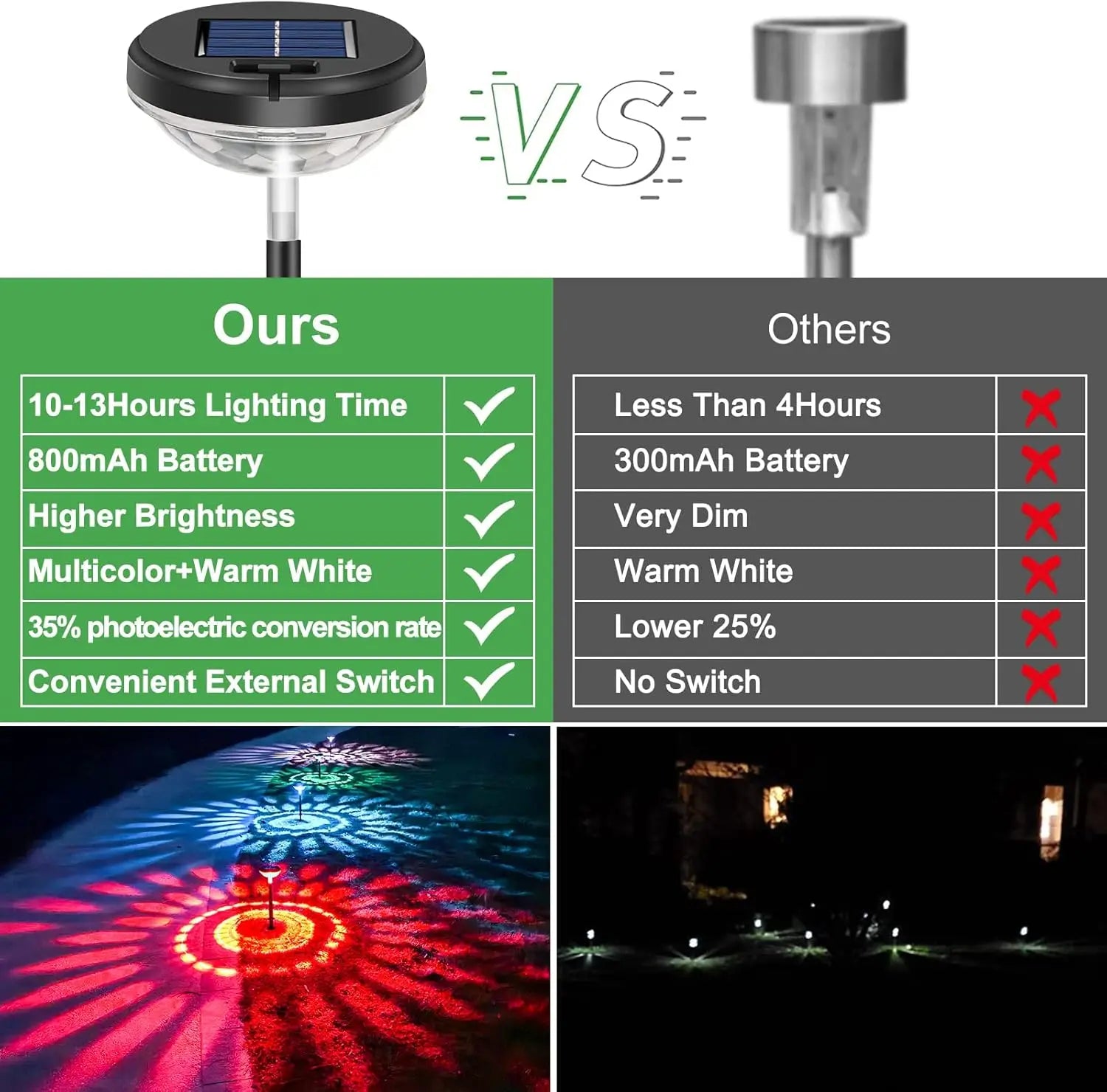 Enhance your outdoor spaces with these Solar Pathway Lights featuring both multicolor and warm white LEDs for versatile ambiance. Designed with an IP67 rating, they offer superior water and dust resistance, ensuring reliable performance in all weather conditions. Solar-powered for energy efficiency, these lights provide an eco-friendly and effortless way to illuminate pathways, gardens, or patios with lasting brightness and vibrant color options. Ideal for expert landscaping projects requiring durable and flexible lighting solutions.